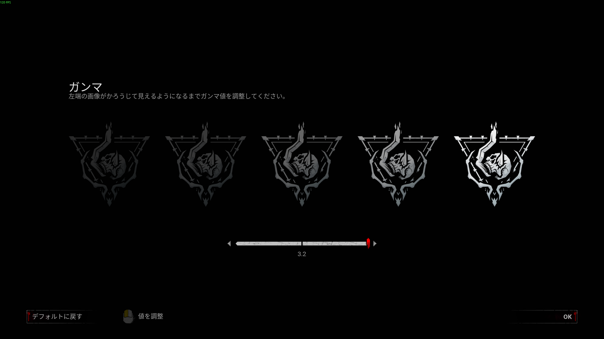 グラフィック設定内のガンマ値設定は、スライダーを右に動かし、暗いマップでの視認性を確保します。 NvidiaゲームフィルターやReshadeなどの外部ツールで明るさを設定する場合は、ガンマ値は設定せずに外部ツール側で設定すればよいです。